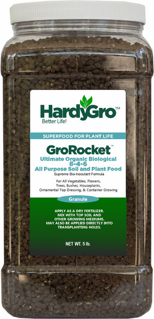 GroRocket dry organic fertilizer + biostimulants + soil microbes 8-4-6, (5lb.)